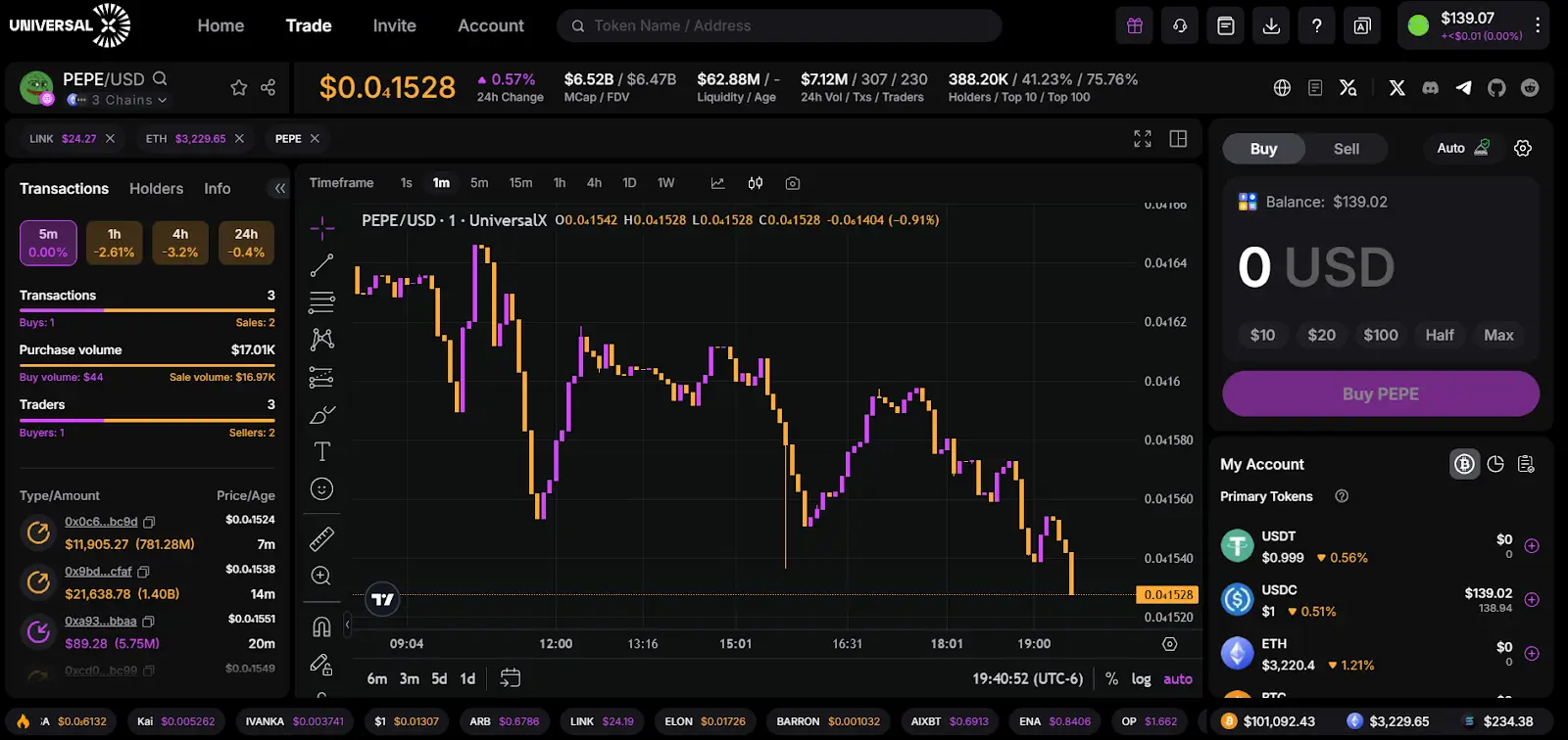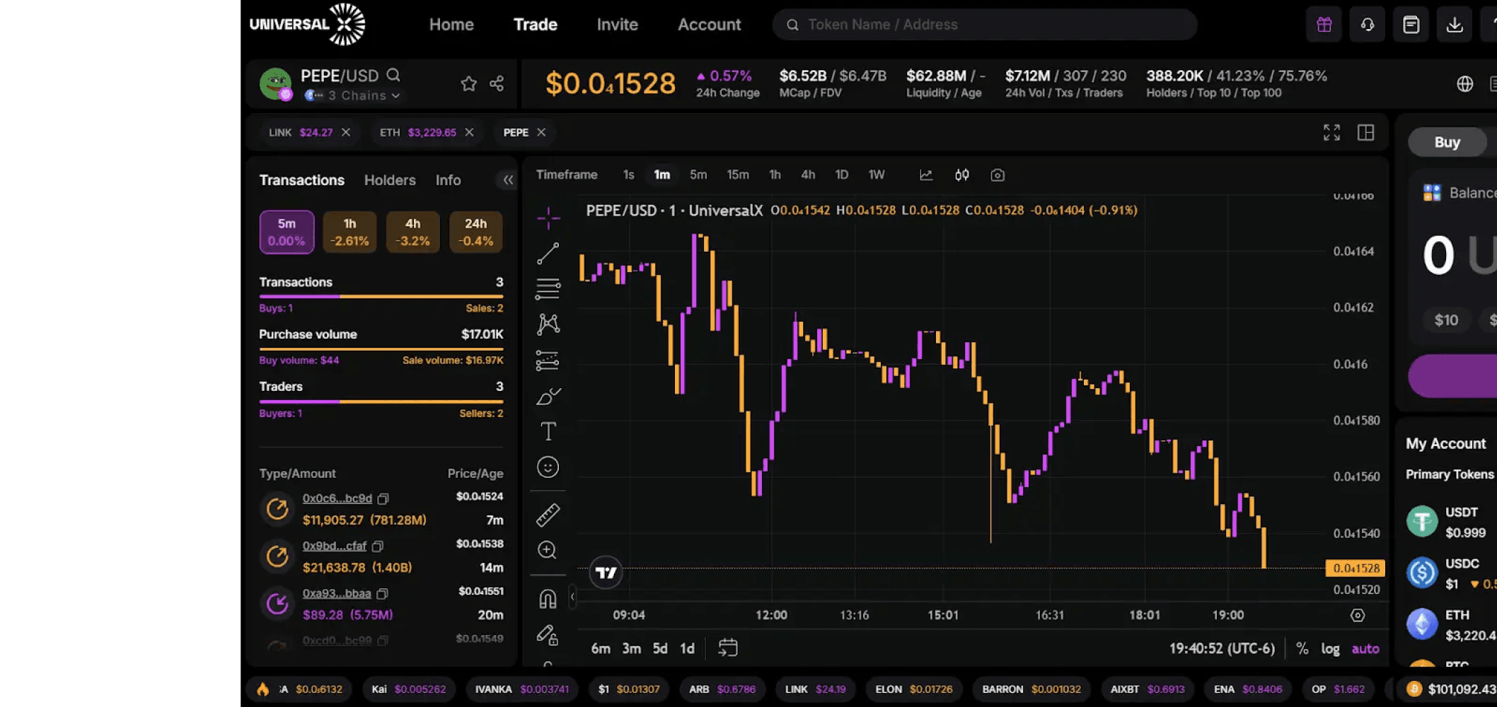 These security metrics allow UniversalX users to quickly assess token risk before trading—a feature that has become essential for traders navigating the memecoin landscape.